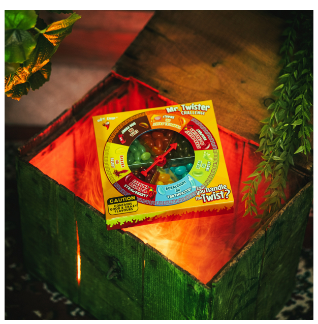 Wie funktioniert es? Drehen, wählen und probieren! Mit jeder Drehung des Rades stellst du dich einer neuen Herausforderung. Wird es eine süße Leckerei oder eine wilde Überraschung? Die Mr. Twister Jelly Beans Challenge ist perfekt für Partys, Spieleabende oder einfach zum Herausfordern deiner Freunde.